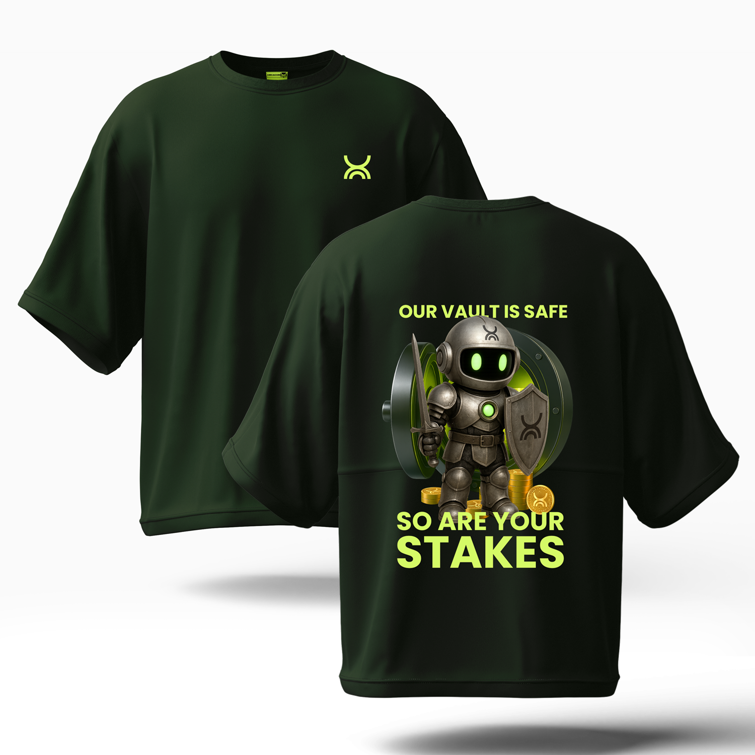 Our vault is safe, so are your stakes. The Steve Guardian oversized tee features CirCaCoin’s armored protector bot, standing guard with shield and coins in hand. A symbol of trust and security within the CCC ecosystem, this tee is designed for holders who value strength and stability as much as style.